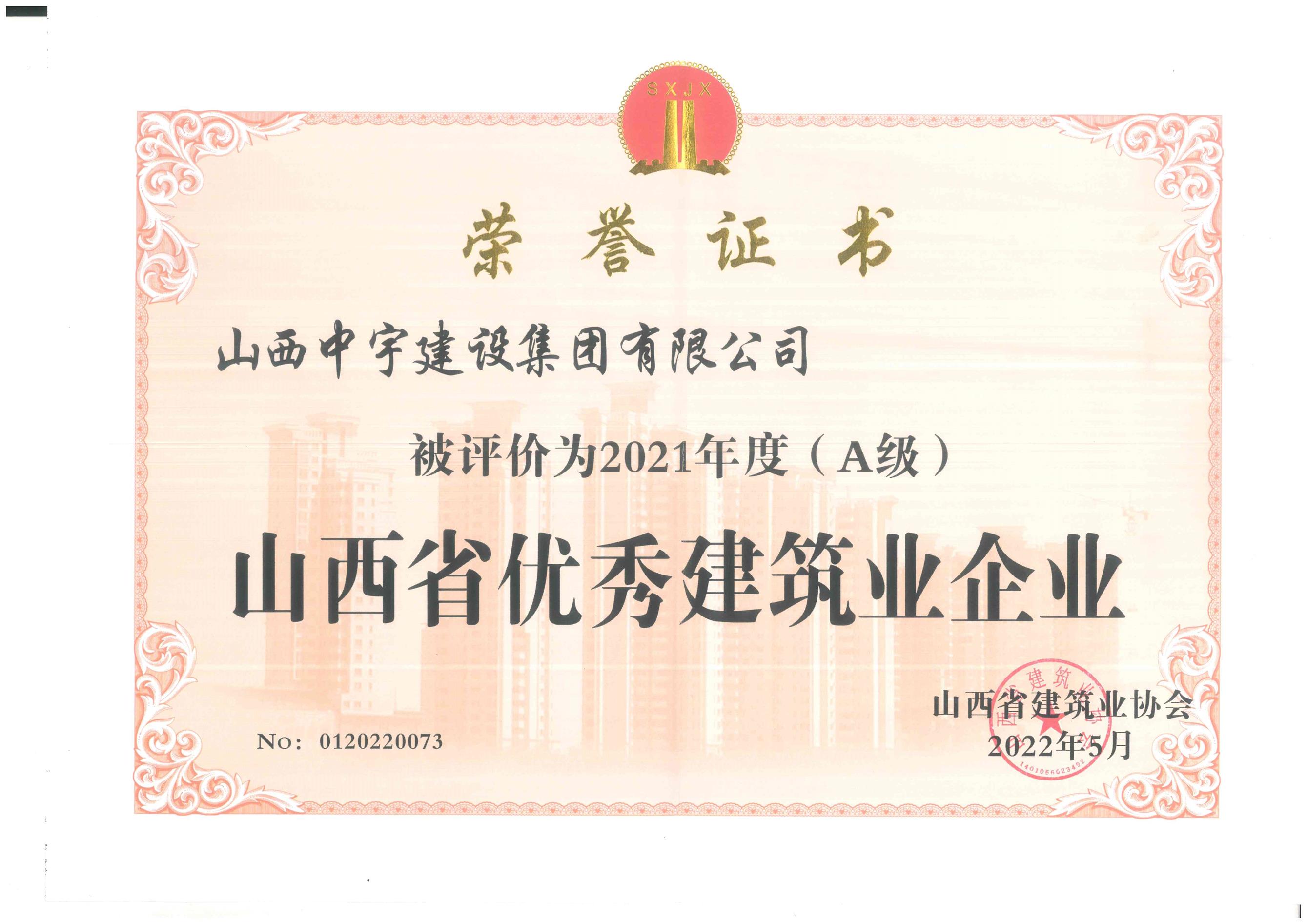 2021年度山西省優(yōu)秀建筑業(yè)企業(yè)