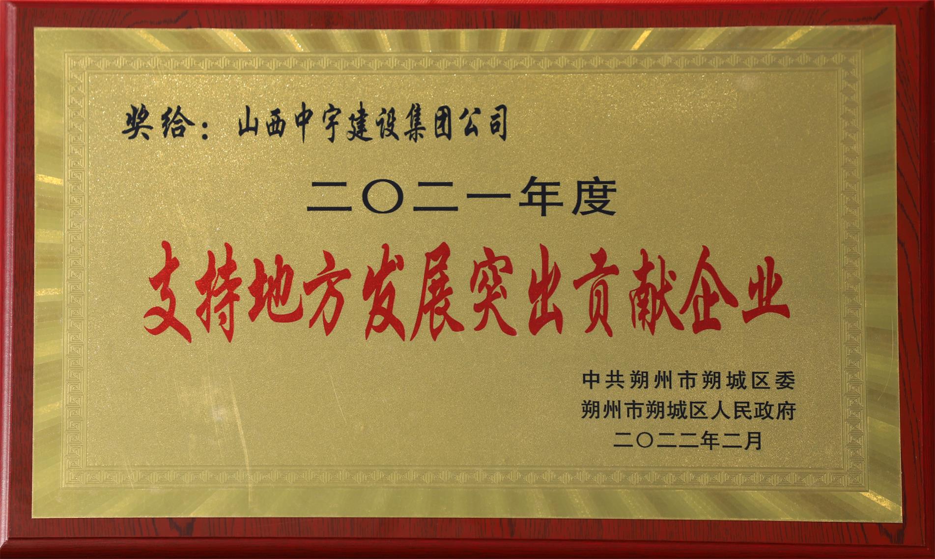 2021年度支持地方發(fā)展突出貢獻企業(yè)