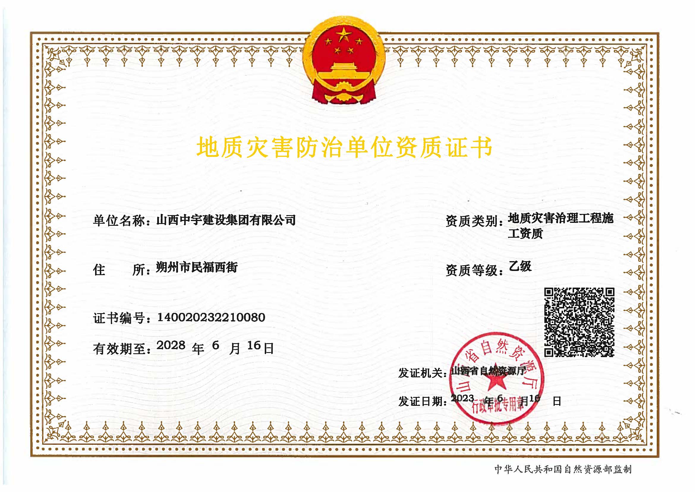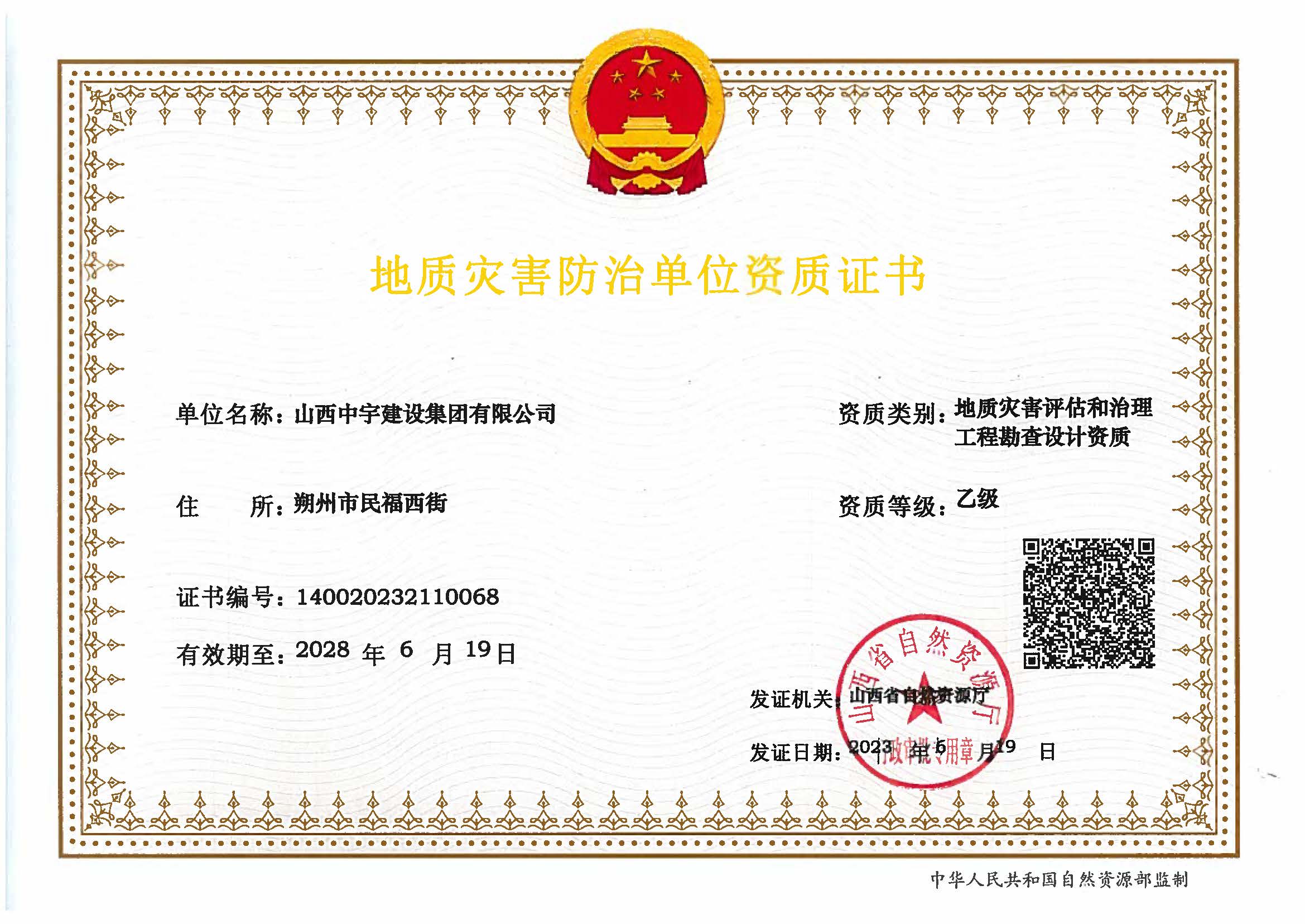 “至誠(chéng)致信的服務(wù),讓用戶滿意”是中宇集團(tuán)永恒的追求地質(zhì)災(zāi)害評(píng)估和治理工程勘查設(shè)計(jì)乙級(jí)資質(zhì)